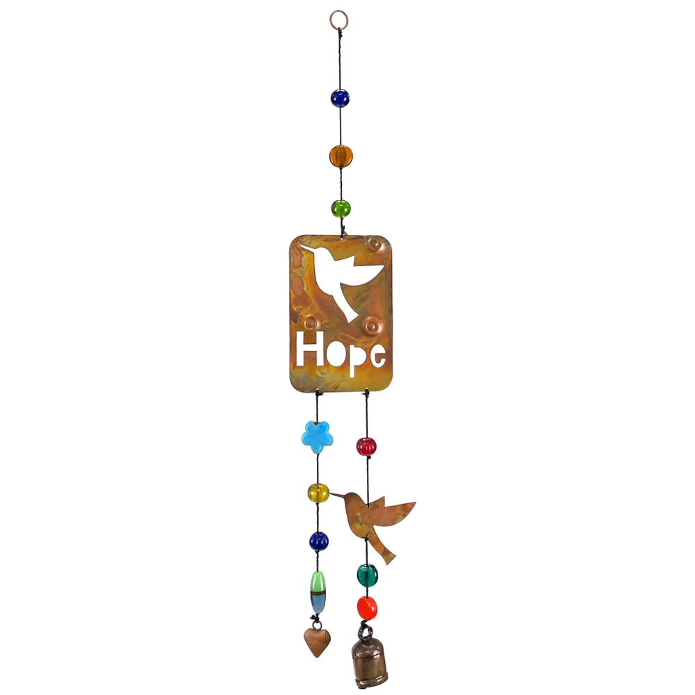 Finished in a striking flamed copper finish, these chimes celebrate peace & love. Handcrafted from recycled iron by artisans in India. Hang these chimes in the garden or as décor inside the home